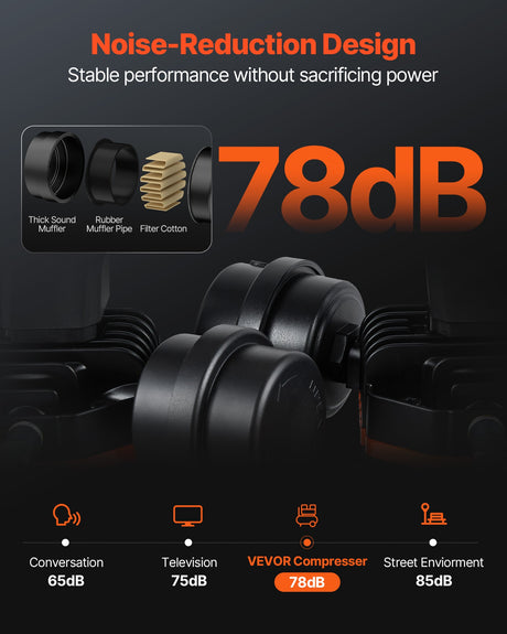 VEVOR Air Compressor Compact Portable Oil Free Compressor 8L 8bar