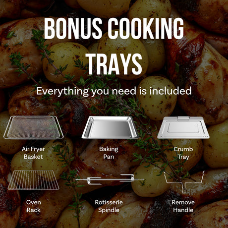 EUROCHEF 10L Electric Digital Air Fryer with Rotisserie, Rotating Fry Basket, Rack and Tongs, White
