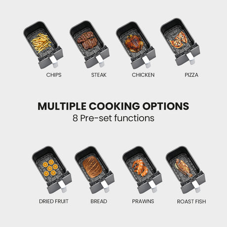 EuroChef 9L Dual Zone Air Fryer, Electric Digital Airfryer Twin Drawers, Black/Silver
