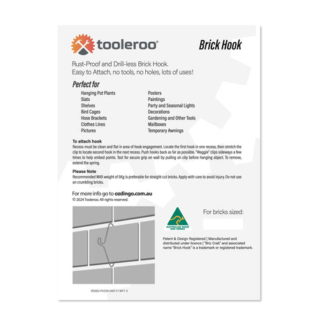 10 Pack 76mm (3") Brick Wall Hooks - Clips Hangers For Pictures Plants