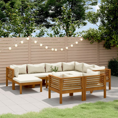 10 Piece Garden Lounge Set with Cream Cushion Solid Acacia Wood