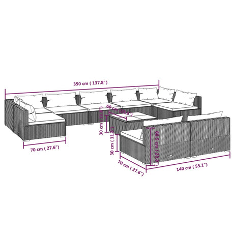 10 Piece Garden Lounge Set with Cushions Grey Poly Rattan