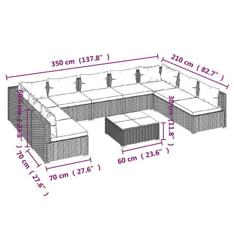 10 Piece Garden Lounge Set with Cushions Poly Rattan Dark Grey