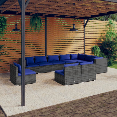 10 Piece Garden Lounge Set with Cushions Poly Rattan Grey