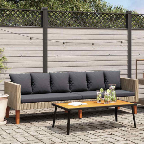 3-Seater Garden Sofa with Cushions Poly Rattan Beige