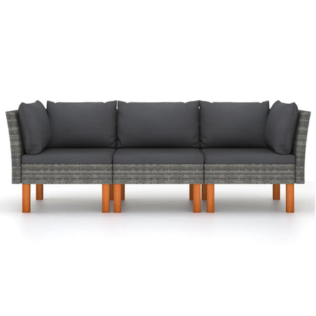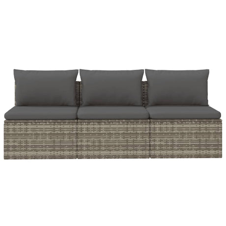 3-Seater Garden Sofa with Cushions Grey Poly Rattan