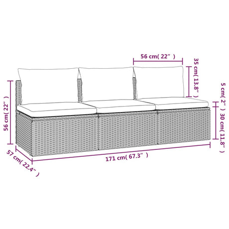 3-Seater Garden Sofa with Cushions Anthracite PP Rattan