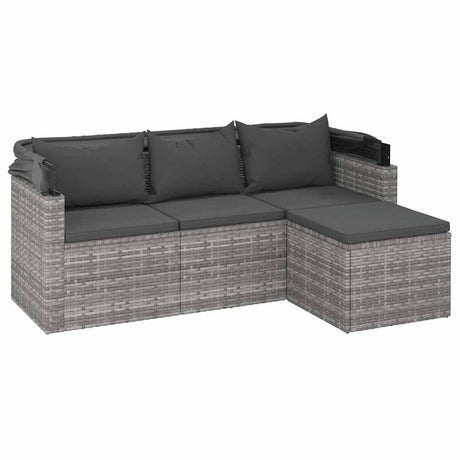 3-Seater Garden Sofa with Roof and Footstool Grey Poly Rattan
