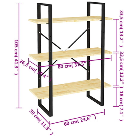 3-Tier Book Cabinet 80x30x105 cm Solid Pine Wood