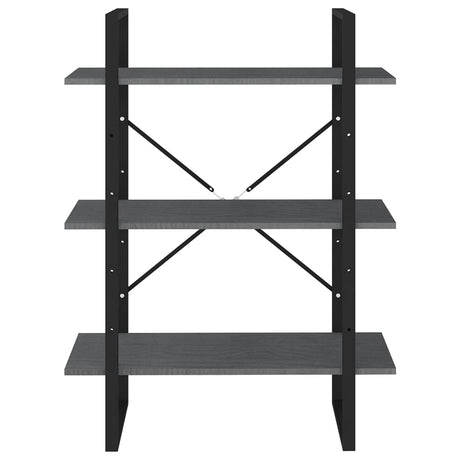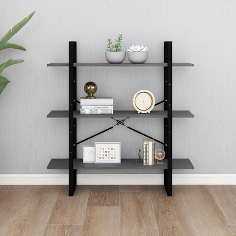 3-Tier Book Cabinet Grey 80x30x105 cm Solid Pine Wood