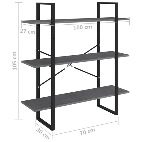 3-Tier Book Cabinet Grey 100x30x105 cm Solid Pine Wood