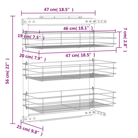 3-Tier Pull-out Kitchen Wire Basket Silver 47x35x56 cm