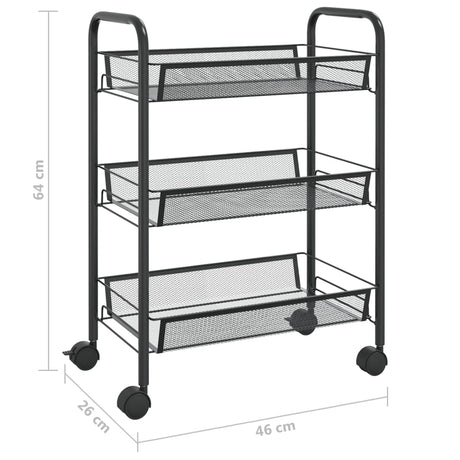3-Tier Kitchen Trolley Black 46x26x64 cm Iron