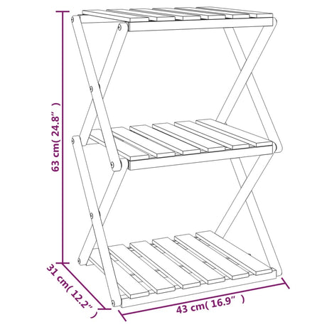 3-Tier Folding Shelf Brown 43x31x63 cm Solid Wood Acacia