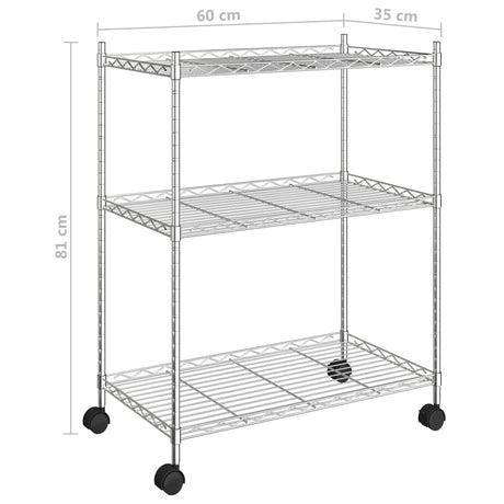 3-Tier Storage Rack with Wheels 60x35x81 cm Chrome 150 kg