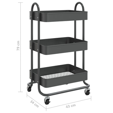 3-Tier Trolley Anthracite 43x34x79 cm Steel