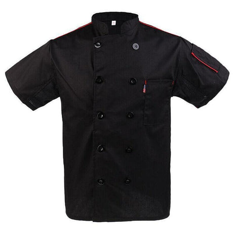 Black Unisex Mesh Sleeve Chef Coat Jacket Restaurant Hotel Cook Short Uniform - XL