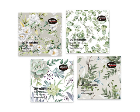 bulk 960 Eucalyptus Pattern Napkin 3ply Assorted 33cm