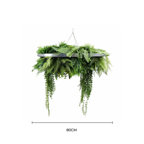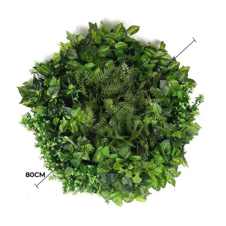 Slimline Artificial Green Wall Disc Art 80cm Mixed Green Fern & Ivy (Modern Black)