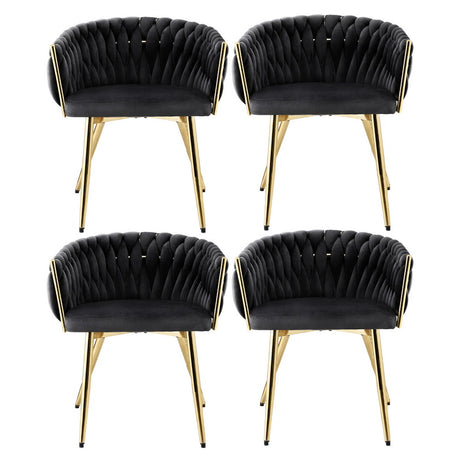 1 Set of 4 Artiss Dining Chairs Velvet Weaving Armchair Blue