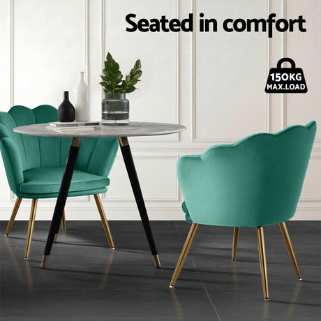 Artiss Dining Chairs Set of 2 Velvet Hollow Armchair Green