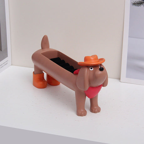 Brown Resin Dachshund Puppy Ring Earring Tray with Sponge Slots - Unique Dog Lover Gift