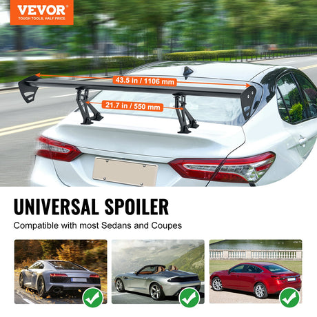 VEVOR Universal Rear Spoiler GT Style Adjustable Trunk Wing Car Racing 43.3''