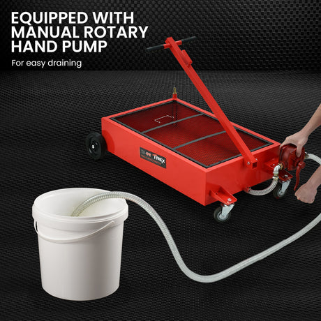 T-Rex 76L Low Level Mobile Truck Waste Oil Fluid Drainer Pan, Hand Pump, for Workshop