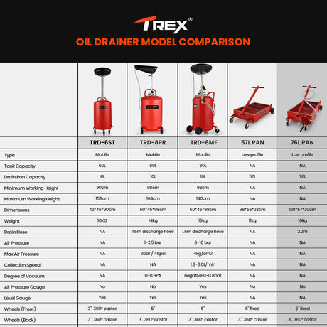 T-REX 60L Mobile Waste Oil Drainer Tank, Telescopic, for Car Engine, Workshop