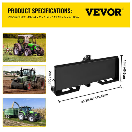 VEVOR 3 Point Attachment Adapter Skid Steer Trailer Hitch Front Loader Case