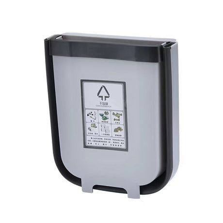 9L Kitchen Wall Mounted Foldable Waste Bin Hanging Trash Can Collapsible - Brown