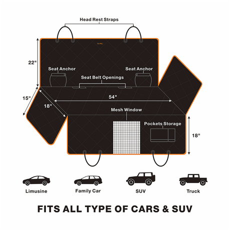 iBuddy Dog Seat Cover Car Hammock w/ Mesh Window & Dog Seat Belt