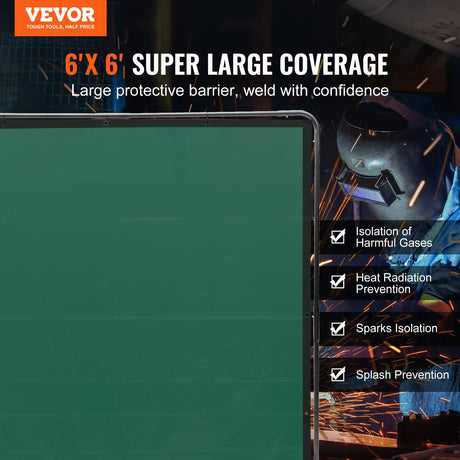 VEVOR Welding Screen with Frame 6' x 6' Welding Curtain Screen on 4 Wheels Green