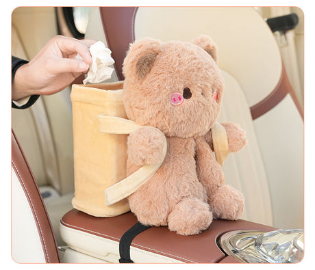 Cute Cloud Bear Tissue Holder for Car - Plush Toy with Storage