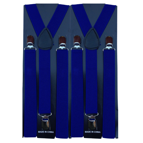 Men's Adjustable Elastic Suspenders Braces - 2 Pack Clip-On Formal Slim Design in Blue