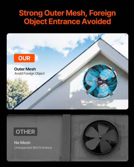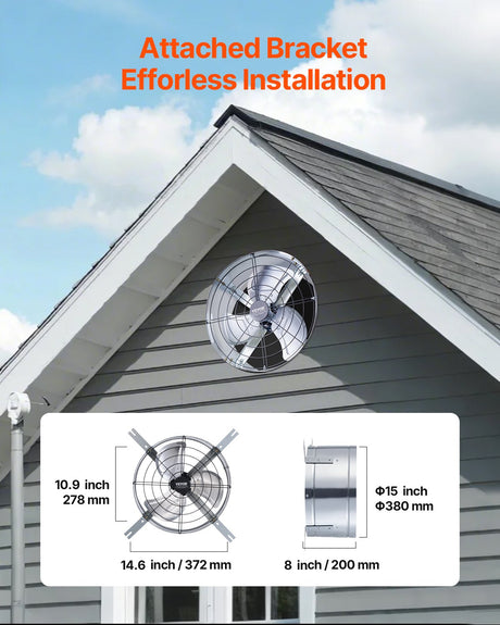 VEVOR 380 mm Gable Mount Fan 1650 CFM Attic Vent Fan with Adjustable Thermostat