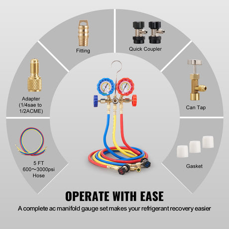 VEVOR AC Manifold Gauge Set 4-Way Fit R134A R22 R12 R502 Refrigeration Charging