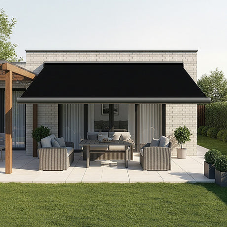 5.0m x 3.0m Retractable Folding Arm Awning Heavy Duty Full Cassette Motorised