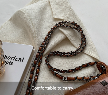 Black Women's Retro Studded Envelope Shoulder Bag - Chain Strap Crossbody Tote in Four Colors