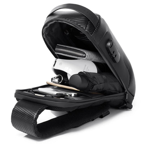 Carbon Fiber Anti Theft Waterproof Crossbody Chest Bag For Men & Women 34 X 18 X 10Cm - Black