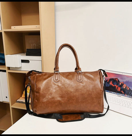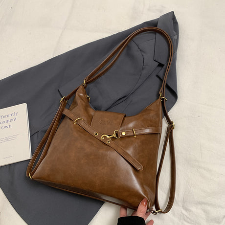 Brown Elegant Faux Leather Shoulder Bag with Adjustable Strap