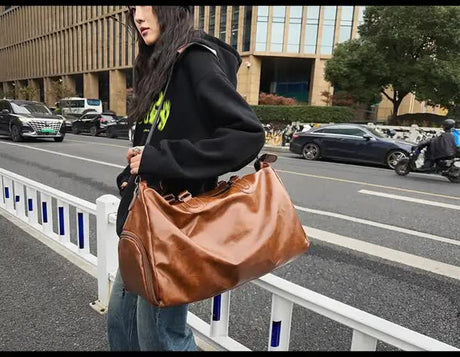 Brown Vintage Studded PU Leather Shoulder Bag with Adjustable Strap