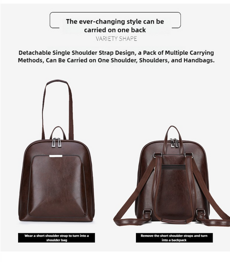 Brown Stylish PU Leather Backpack for Women - Compact Travel Companion