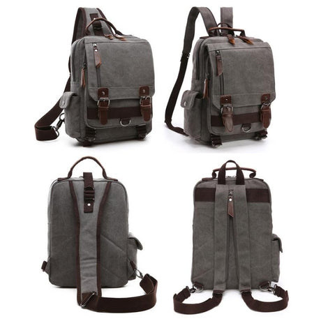 Gray Canvas Chest Bag For Outdoor Travel Lightweight & Durable