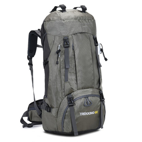 Gray 60L Waterproof Hiking Backpack with Multi-Pocket Design for Outdoor Adventures