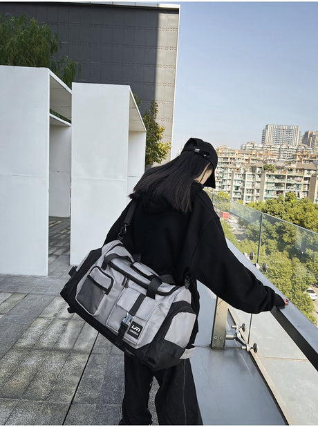 Grey Unisex Travel Bag with Utility Buckles and Wet/Dry Compartments
