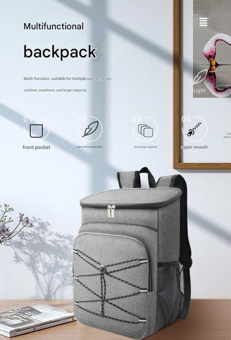 Grey Large Insulated Cooler Backpack - Leakproof, Lightweight for Picnic, Beach, Camping