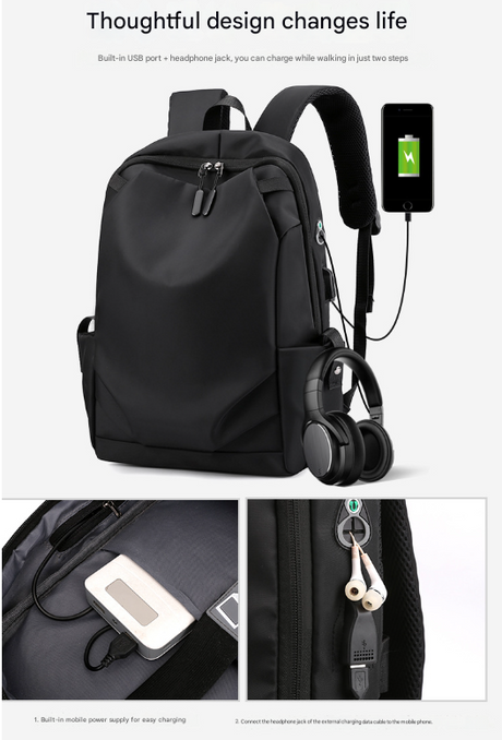 Grey Minimalist USB Charging Laptop Backpack - Elegant and Spacious Travel Bag