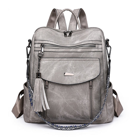 Grey Stylish Anti-Theft Backpack for Women - Vintage PU Leather Convertible Rucksack & Shoulder Bag
