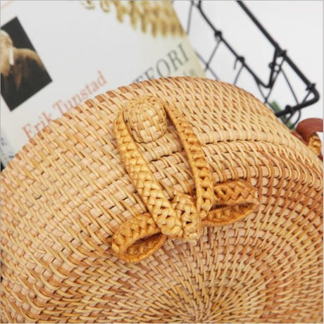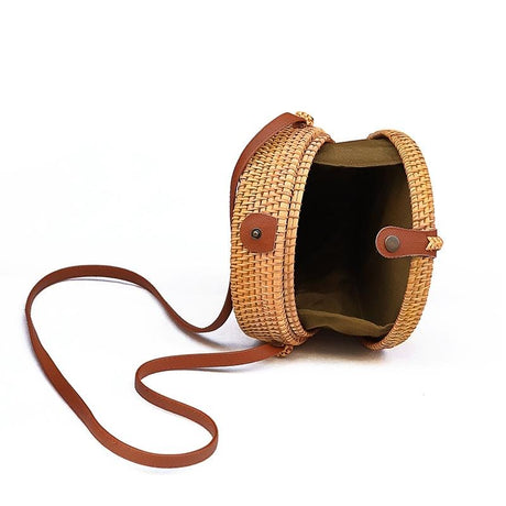 Handmade Round Rattan Bag Vintage Art Beach Diagonal Bag 18X18X6Cm